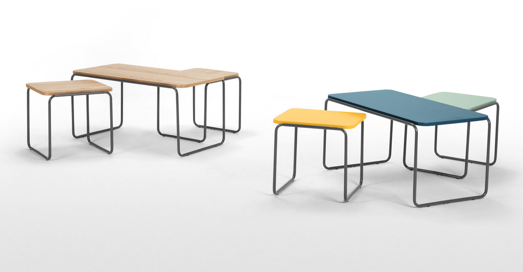 Clean and minimalist, the Hill dining table will fit effortlessly into your kitchen. The simple design is versatile, with ash veneer and a bold red frame for a striking finish. It helps that there are matching dining chairs, so styling is a breeze. Hill also comes in a calming grey that’ll fit into any dining area. It’s a table that’s built to last, with sturdy metal legs. The compact design makes it ideal for a small space or for a kitchen dining table.