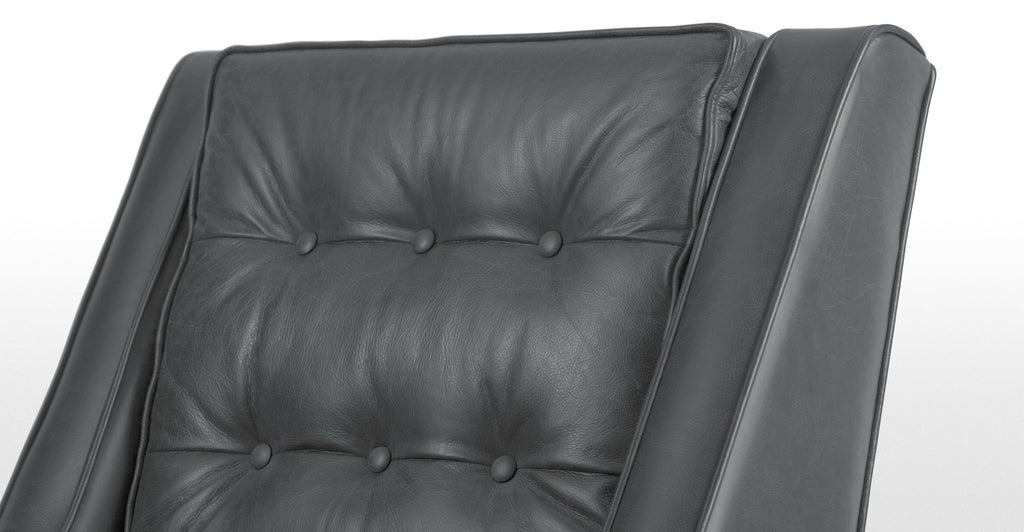 Now in Oxford Grey - a new, sophisticated colour. The design mixes a classic silhouette with stylish piping and accent buttons for a statement look. In butter-soft premium leather for plenty of cool, club lounge character. Looks fantastic now and will age beautifully over time. Made for lounging with a deep, sprung seat and feather-mix cushioning. With solid hardwood feet stained to a dark finish.