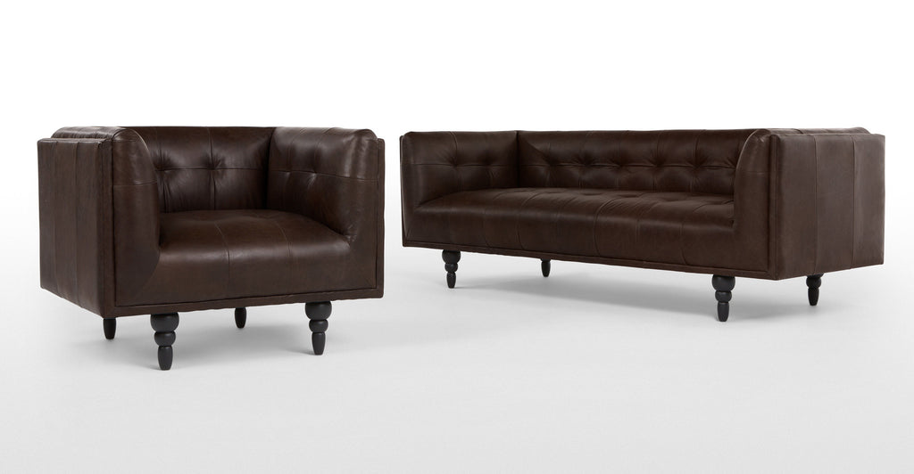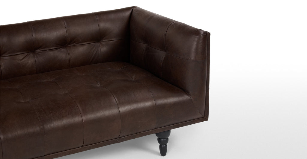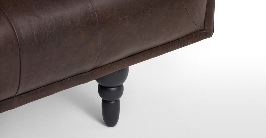 Connor deserves a double take, it’s one of our most handsome designs. Uncomplicated and fuss-free (just how we like ‘em), you won’t need to plump any cushions. Refined tufted lines give it a contemporary look. We added the option of soft plush velvet or premium leather to give it an additional layer of sophistication. Crafted with a solid wood frame and legs, Connor is made to last. We love the added detail on the legs. The dark stain gives it a rich finishing touch.
